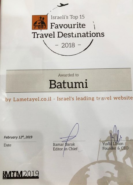 ბათუმი 2018 წლის 15 საუკეთესო ტურისტულ მიმართულებას შორის ისრაელის ერთ-ერთმა წამყვანმა ვებ-გვერდმა, „lametayel.co.il“-მა დაასახელა. როგორც აღმოჩნდა, 2018 წელს, ბათუმის შესახებ ინფორმაციებს ვებ-გვერდის მილიონობით უნიკალური მომხმარებლის მხრიდან ყველაზე დიდი წვდომა და ძებნა ჰქონდა. სამოგზაურო გვერდის წარმომადგენლებმა სპეციალური ჯილდო აჭარის ტურიზმის დეპარტამენტის წარმომადგენლებსა და საქართველოს ელჩს ისრაელში, თელავივის საერთაშორისო ტურისტულ გამოფენაზე გადასცეს.
