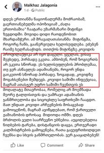 ასეთი შინაარსის კომენტარი “ნაცმოძრაობის” კანდიდატმა საკუთარ ,,ფეისბუქგვერდზეც,, გამოაქვეყნა: