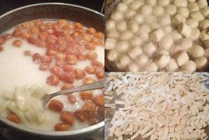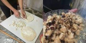 რაც შეეხება მომზადების წესს – წყლითა და ფქვილით მოვზილოთ საშუალო სიმაგრის ცომი, მისი ერთი ნაწილი გავაბრტყელოთ ძალიან თხლად დ დავჭრათ ანასთის ღერების ტოლ ნაჭრებად. დავყაროთ ფქვილი და ავურიოთ, რათა ცომი ერთმანეთს არ მიეწებოს. ოვალური ფორმის ცომის ნაჭრები დაბრაწეთ ერბოიან ტაფაზე გაოქროსფერებამდე. იმავე ერბოში მოდაღეთ წვრილად დაჭრილი ხახვი.