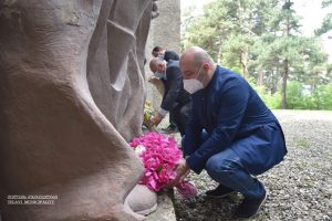 თელავში ადგილობრივი ხელისუფლების წარმომამდგენლებმა მეორე მსოფლიო ომში დაღუპულთა ხსოვნის მემორიალი ყვავილებით შეამკეს